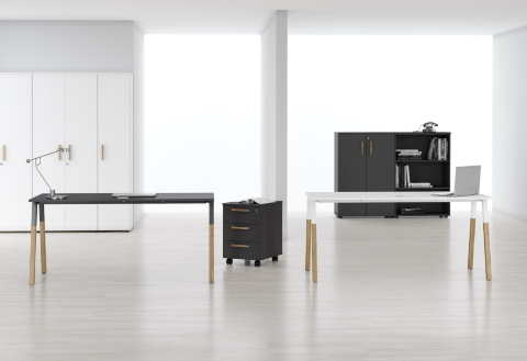 Шкаф колонка с глухой малой дверью (L) и топом FLC 40.1(L) Белый премиум/Дуб Гамильтон 404х429х818