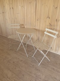 Лаконичный комплект садовой мебели. Складные стулья и столик не занимают много места для хранения, а компактные размеры и небольшой вес позволяют брать их с собой на пикник или дачу. Комплект изготовлен из металла, а поверхность покрыта слоем краски, которая обеспечивает влагостойкость и легкий уход. Изогнутые ножки с подпятниками позволяют устойчиво установить мебель на любой поверхности. Простой дизайн комплекта дополнит любой дачный участок, веранду или фудкорт. Стулья выдерживают нагрузку до 120 кг.